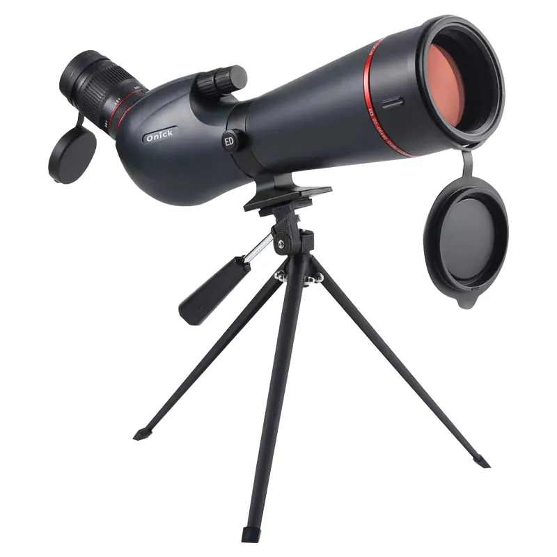 Onick Scoutシリーズ20-60 x 80 EDモノキュラーターゲットスコープは、軍用標準の距離計グラチュールを備えており、細かいスケール位置を使用して目標距離と体格を計算できます。27 mmの大型接眼レンズデザインと80 mmの大口径対物レンズを採用しています。高品質のBAK 4高精細プリズムは、光漏れを効果的に減らし、対物レンズはEDレンズ、フルマルチレイヤーブロードバンド反射防止コーティング、十分な光取り入れ、クリアで鮮明な画像を使用して、視覚的な饗宴をより快適に楽しむことができます。